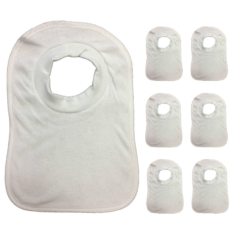 7 Pack Popover Baby Bib Bibs White Soft Towelling Unisex Multi Pack