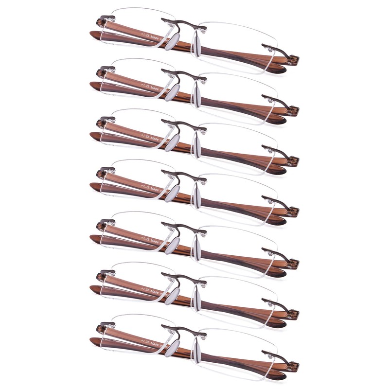 7-Pack Rimless Reading Glasses with Small Lenes (BrownArm,+1.00)