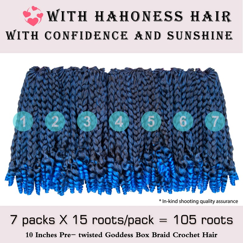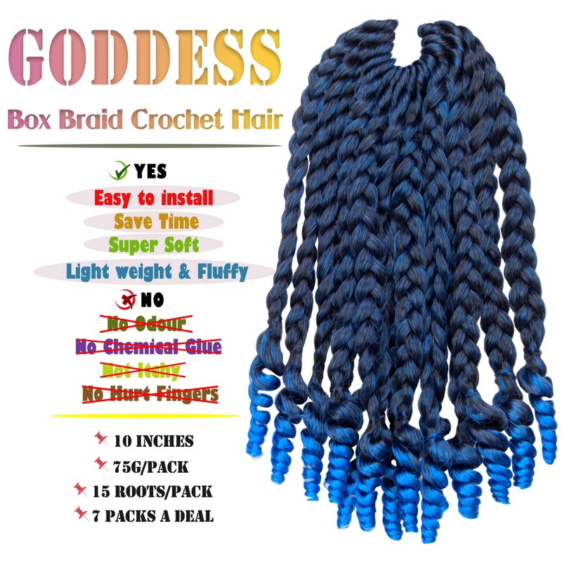7 Packs 10 Inches Goddess Box Braid Crochet Hair With Curly Ends Ombre Blue Hair Extensions For Black Women and Baby Kids(10 Inch-7Packs,T1B/BLUE)