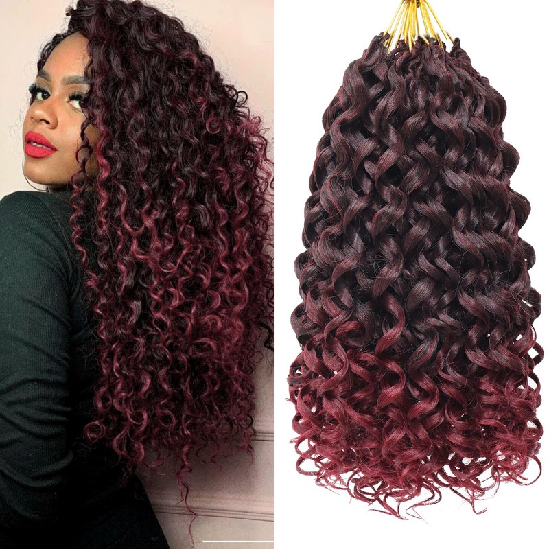 7 Packs Curly Crochet Hair for Black Women 14 Inch GOGO Curl Crochet Hair Burgundy Deep Ocean Wave Crochet Hair Synthetic Bohemian Crochet Braids(14 inch, TBUG)