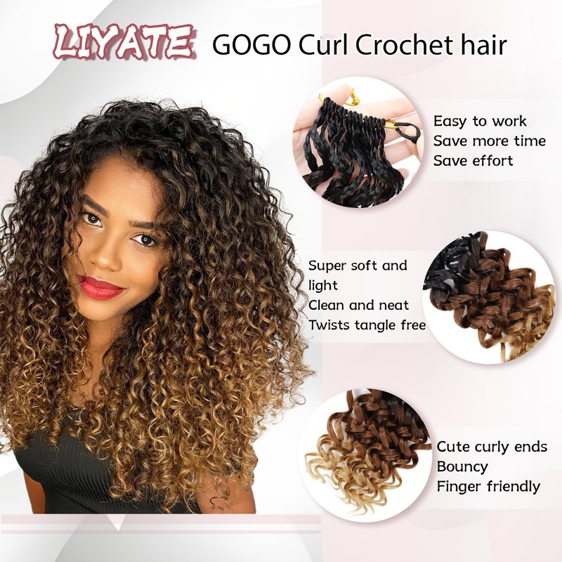 - Advantages:Gogo Curl Crochet Hair is with bouncy beach curl water wave crochet hair style, super soft and smooth, durable & natural texture, comfortable to Wear. Hand-made & Individually Pre-Looped, easy to install, especially for beginners