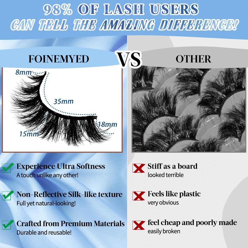 FOINEMYED Strip lashes combine the convenience of a full lash band with the customization of personalized lashes, allowing you to choose the length and location while don't require a lot of time. Friendly to beginners!
