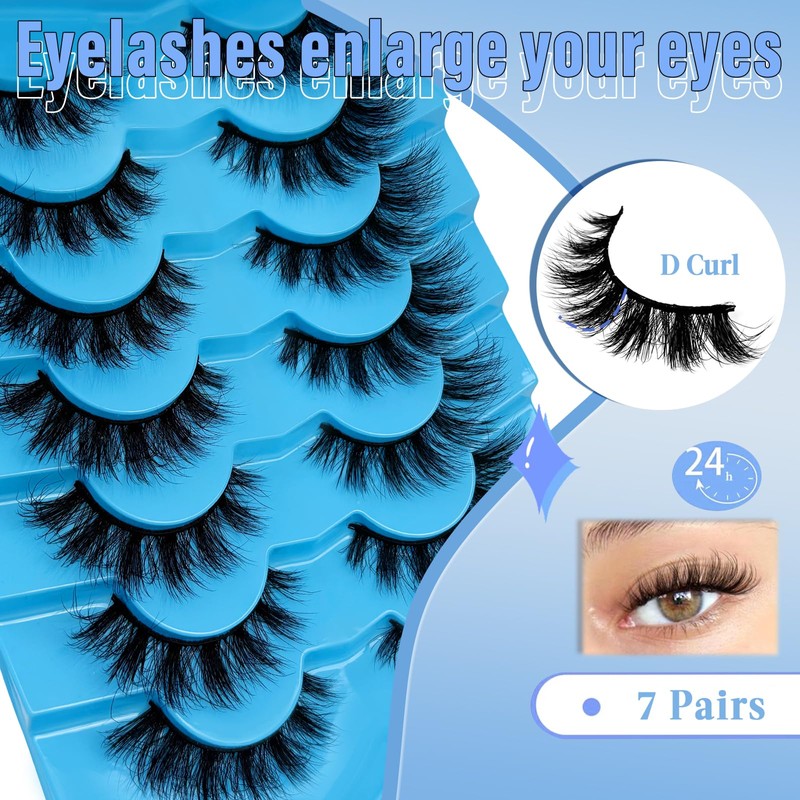 7 Pairs Strip lashes Multipack Mink Lashes 6D Volume Fluffy False Eyelashes Wispy Lashes Faux Mink Lashes Cat eye look Fake Eyelashes by FOINEMYED