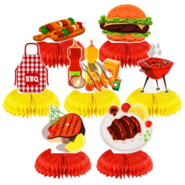 7 Pcs BBQ Baby Shower Honeycomb Centerpieces BBQ Party Tables Decorations BBQ Theme Table Topper for Birthdays BBQ Picnic Party Summer Barbecue Themed Holidays Party Supplies