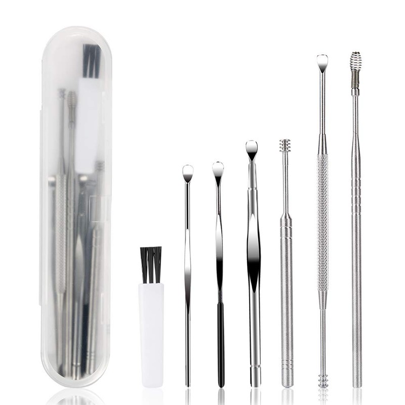 7 Pcs Ear Pick Earwax Removal Kit, BetyBedy Ear Cleansing Tool Set, Ear Curette Ear Wax Remover Tool with Cleaning Brush and Storage Box, Sliver