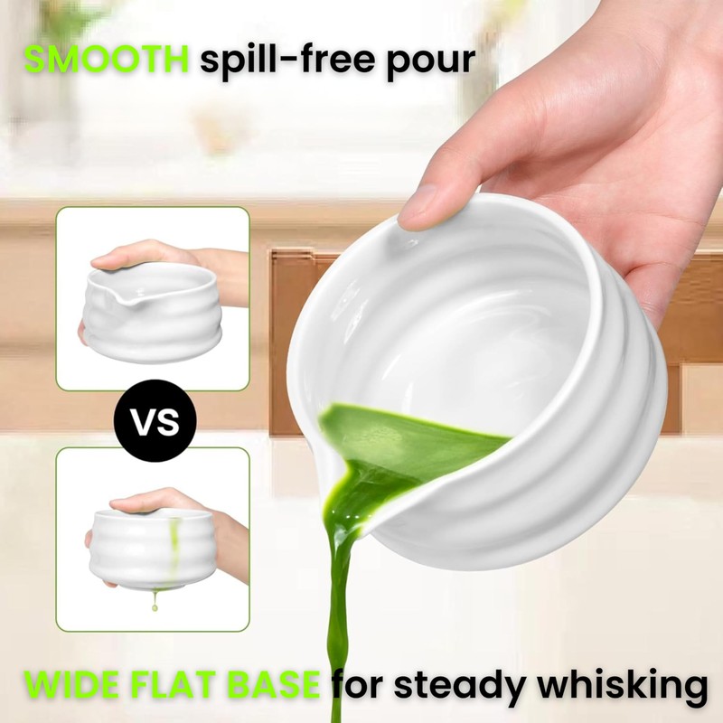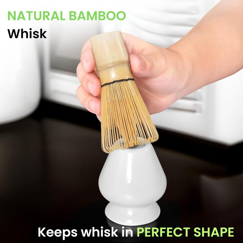 - SAFE AND DURABLE DESIGN: The bamboo whisk for matcha tea is handmade from 100% natural bamboo and coated with a food-safe vegetable oil for extra strength and long-lasting use. The ceramic mixing bowl is completely lead-free and mercury-free, making this matcha tea set safe, reliable and perfect for everyday tea preparation.