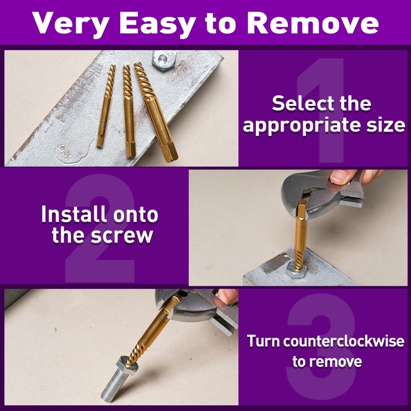 - 【Easy to Use】Whether screws or bolts are stuck due to corrosion, breakage, rust, or paint—our titanium-coated chrome-vanadium extractors remove them effortlessly, meeting the needs of various repair situations.