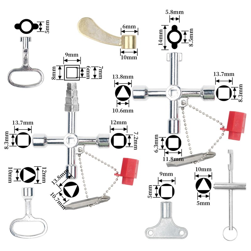 7 Pcs Utility Key Kit, Universal Control Cabinet Key, Gas Meter Key, Meter Box Key, Triangle Spanner Key, 4-Way Multifunctional Key, Square Key Valve for Gas, Electric and Plumbing Applications