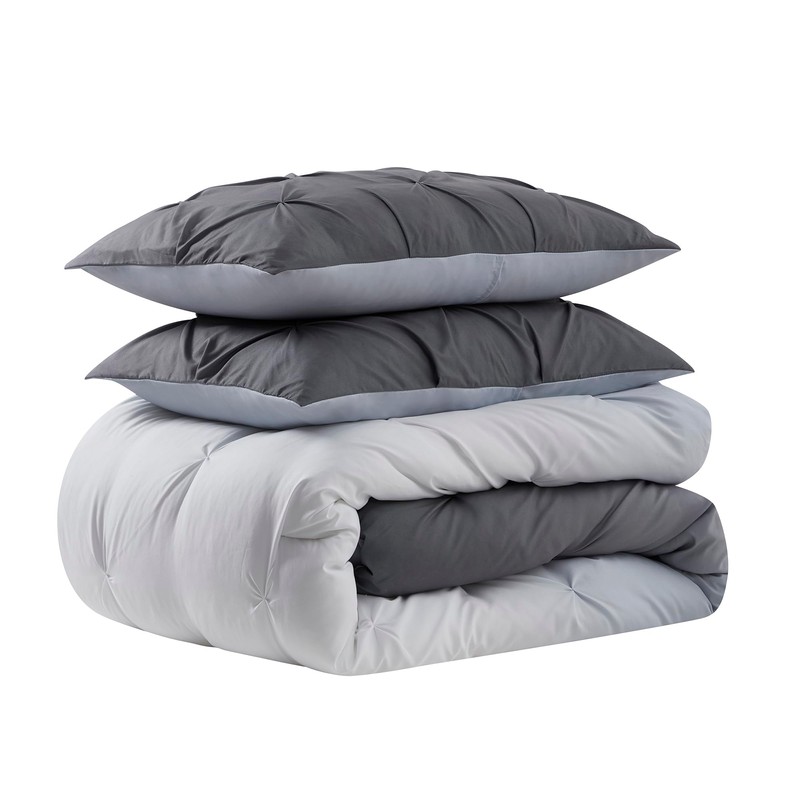 7 Piece Comforter Set Bed in a Bag Ombre Pintuck Design All Season Soft Down Alternative Bedding Comforter Set & Luxurious Matching Bed Sheets & Pillow Shams, Ombre Pintuck Gray, Full