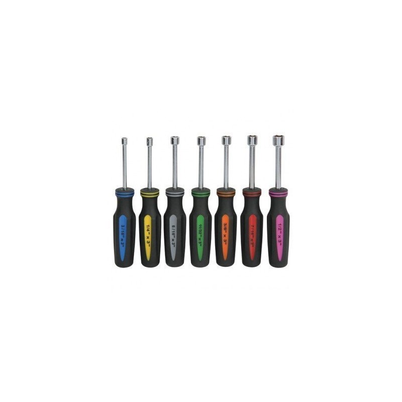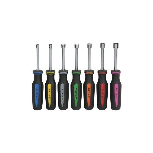 7 Piece SAE Professional Nut Driver Set Color Coded Nonslip TPR Hand Grips and 3-inch Hollow Shaft
