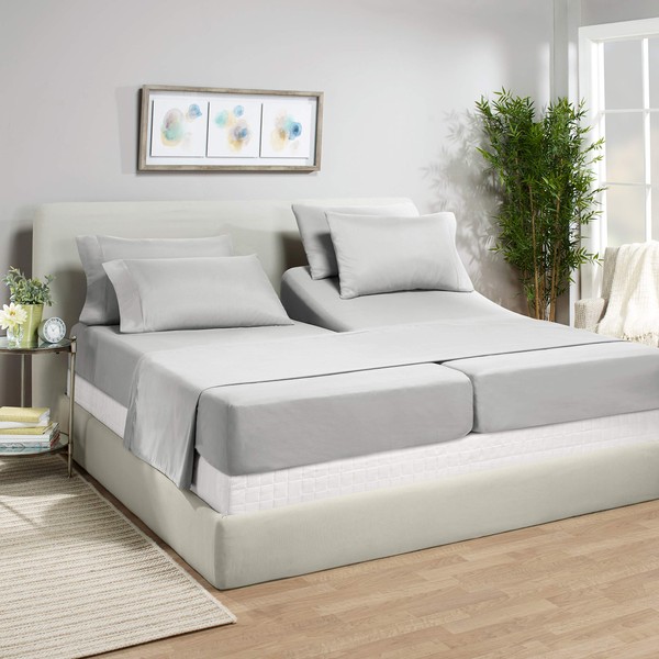 7 Piece Split King Sheets - Bed Sheets Split King Size â Bed Sheet Set Split King Size - 7 PC Sheets - Deep Pocket Sheets Microfiber Bedding Sets Hypoallergenic Sheets - Split King - Silver Light Gray