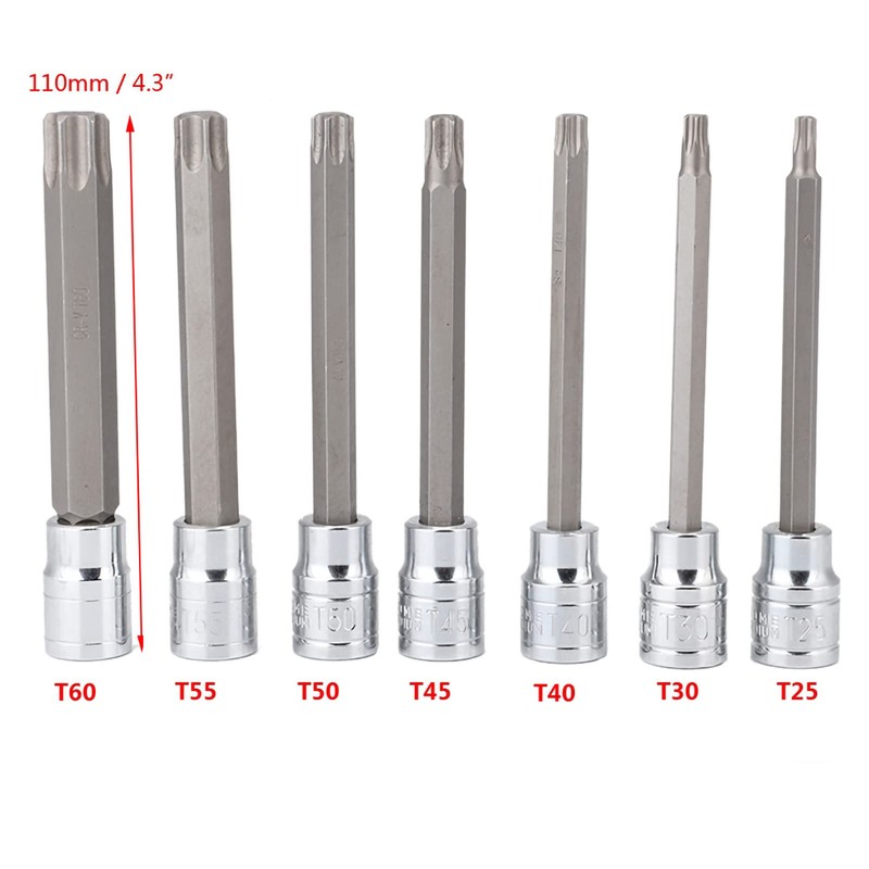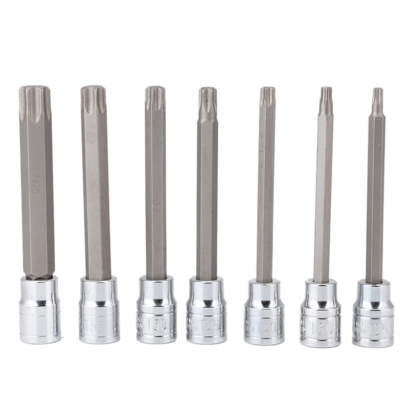 7 Pieces torx star bit sockets with 3/8inch drive.
