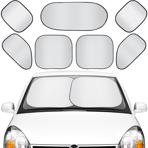 Tallew 7 Pieces Car Window Shade Set Include 4 Side Blocks Sun Shades and Rear Block UV Rays Sun Visor Protector with 12 Suckers for Automotive Vehicle (Silver)