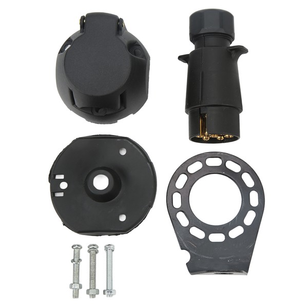 1、Wide Application: 7 pin trailer plug socket connector kit, widely used in trailers, recreational vehicles, cars and boats, convenient and practical. 2、Excellent Material: The plug and socket are made of copper and plastic, with high transmission efficiency and corrosion resistance, not easy to crack. 3、Easy Connection: The connector has standard pins, which can be connected to the corresponding wire accurately, with stable performance. 4、Other Accessories: Equipped with bracket, gasket and bolts, the trailer connector is easy to install and disassemble, has strong practicability. 5、Replacement Parts: The trailer plug socket has standard specifications and can directly replace the old or damaged plug socket connector.