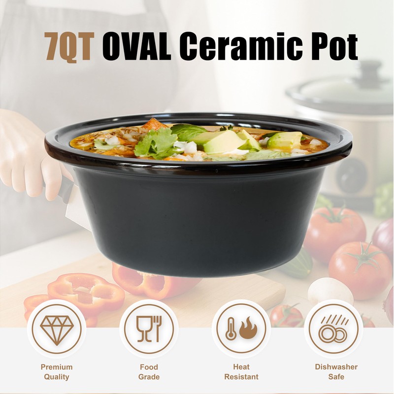 7 Quart Ceramic Slow Cooker Replacement Insert, Compatible with Crockpot Slow...