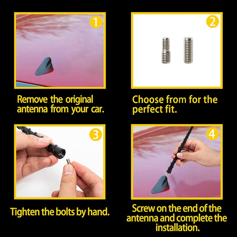 - ✔ EASY INSTALLATION:No modification is required and You won't need any tools.Simply install this car antenna in minutes by unscrewing your existing antenna and screwing this in place.