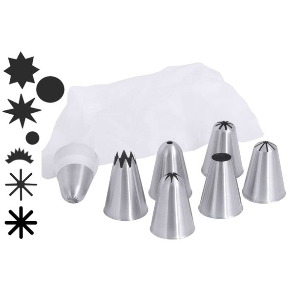 - Piping Tips Set 7 Seamless Piping Nozzles Made of 18/10 Stainless Steel with a Nylon Piping Bag