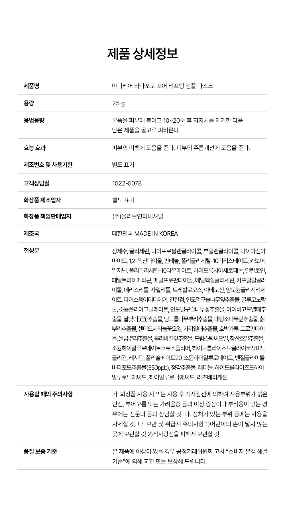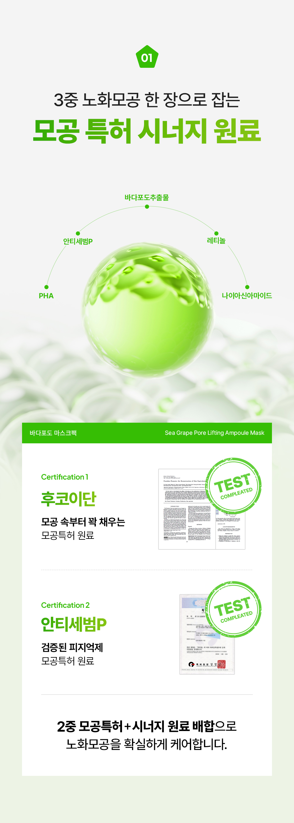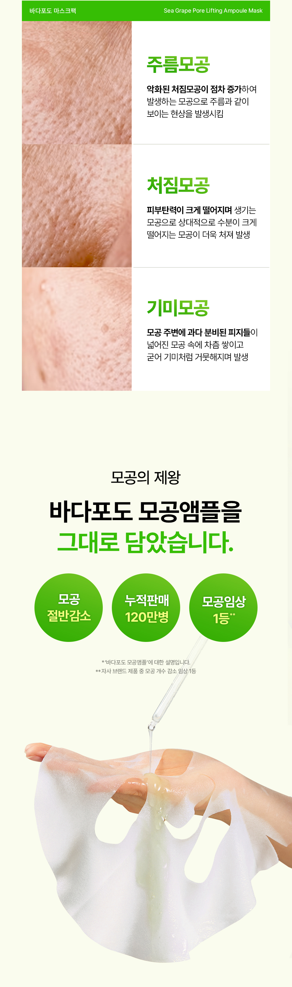 [7매] 바다포도 포어 모공 리프팅 앰플마스크 1박스