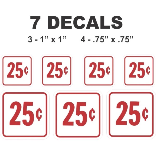 7 Square Gumball Vending Machine 25 Twenty Five Cent Vinyl Decals