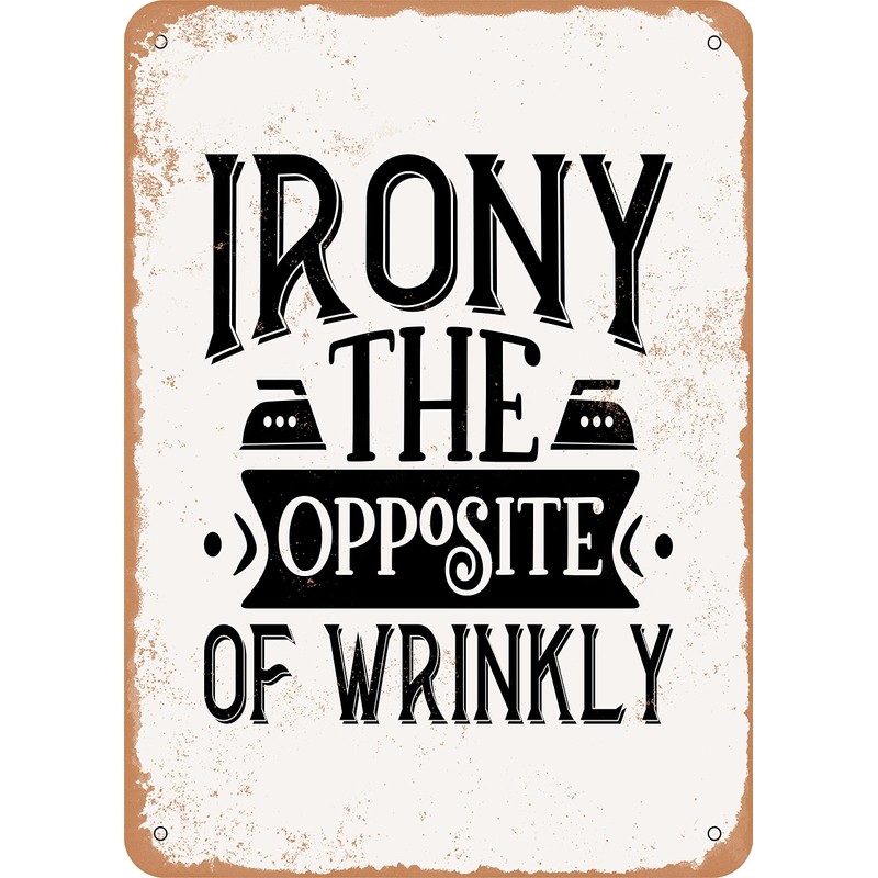 7 x 10 METAL SIGN - Irony the Opposite of Wrinkly - Vintage Rusty Look