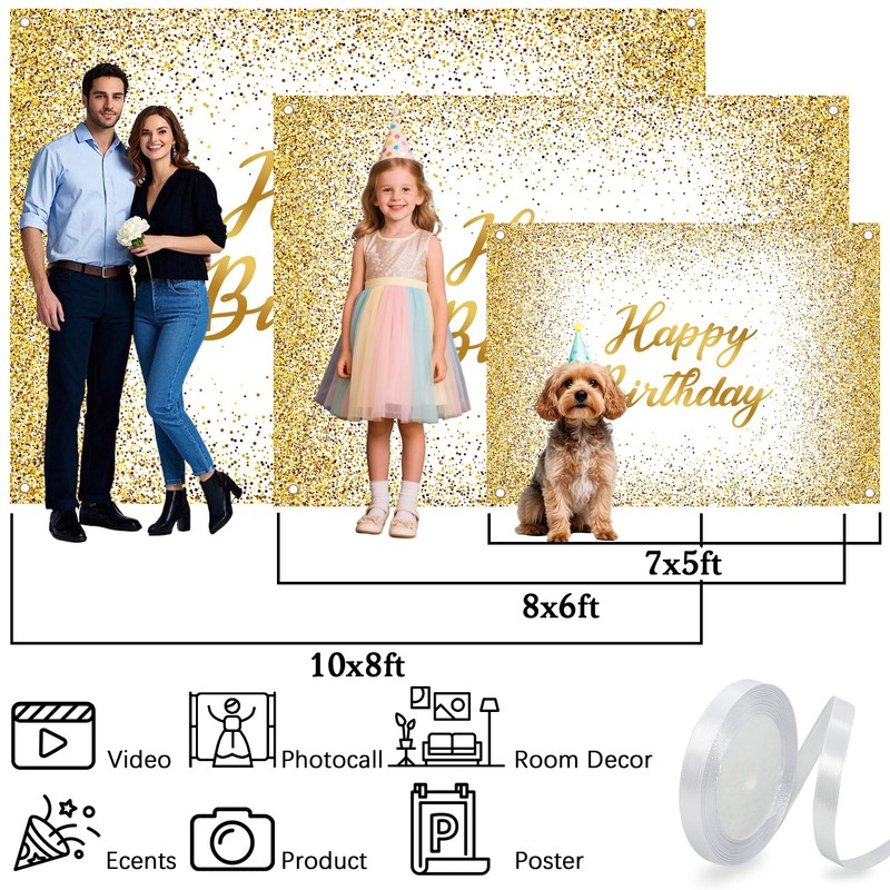 - 【Customizable Large Dimensions】Measuring 7x5ft (210x150cm), this gold white birthday backdrop dominates any space. Contact us for personalized sizing to create your dream sparkle birthday backdrop for themed celebrations.
