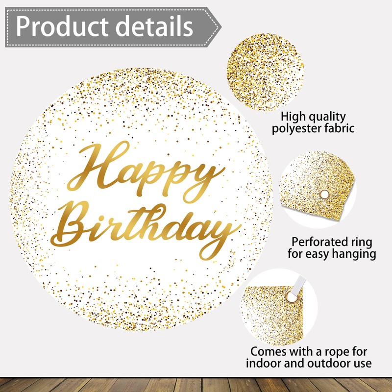 7 x 5 ft Glitter Birthday Backdrop Polyester White and Gold Spots Large Happy Birthday Background Sign for Women Men Decorations Photo Booth Props Supplies Banner