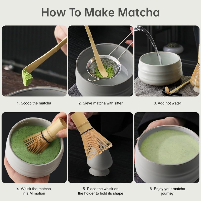 - Discover the art of matcha broom set: with this matcha set without powder, you can effortlessly experience the traditional art of matcha preparation, quickly dissolve and froth the tea powder, and enjoy the perfect taste with every sip.