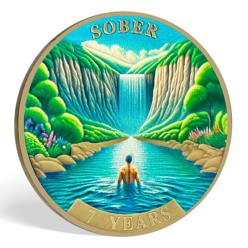 - Why You Should Buy This 7-Year Sobriety Coin: This 7-Year Sobriety Coin is more than just a keepsake; it’s a powerful symbol of your ongoing journey in Alcoholics Anonymous. The "Man Under Waterfall" design, paired with an inspirational quote, represents renewal and strength within the recovery community. Whether for yourself or as a gift for someone special, this coin serves as a daily reminder of resilience, hope, and the continued pursuit of sobriety