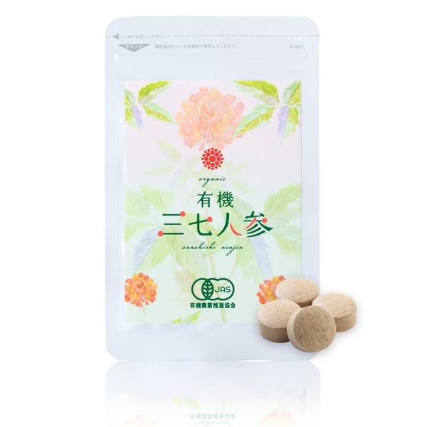 有機 三七人参 田七人参 サプリ 有機 栽培 創業70年【 4つの国際的認証 取得 】純度 100% JAS 無添加 サポニン 1袋 90粒