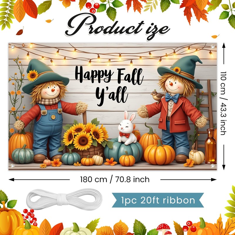 - Size: The banner measures 180 x 110 cm/ 70.8 x 43.3 inches, large enough for the fall party themed decoration and for photography at your party, this happy Fall Y'all banner is a good addition to your fall decor, it added more highlights to your Autumn Harvest party and to impress your guests