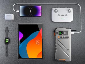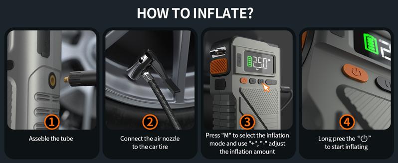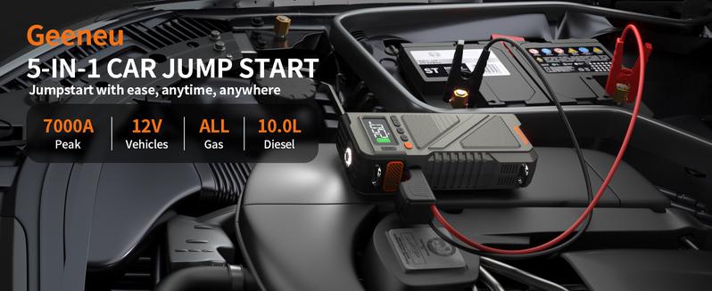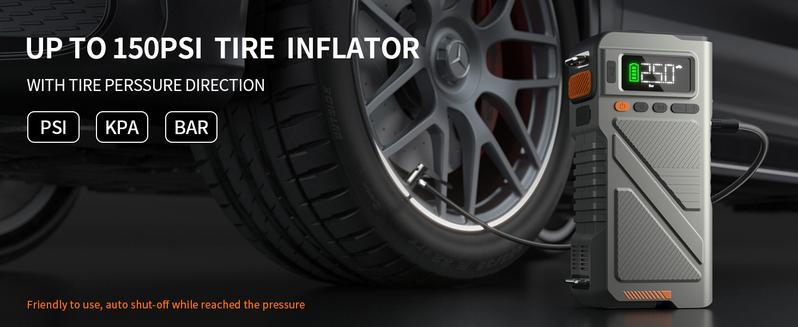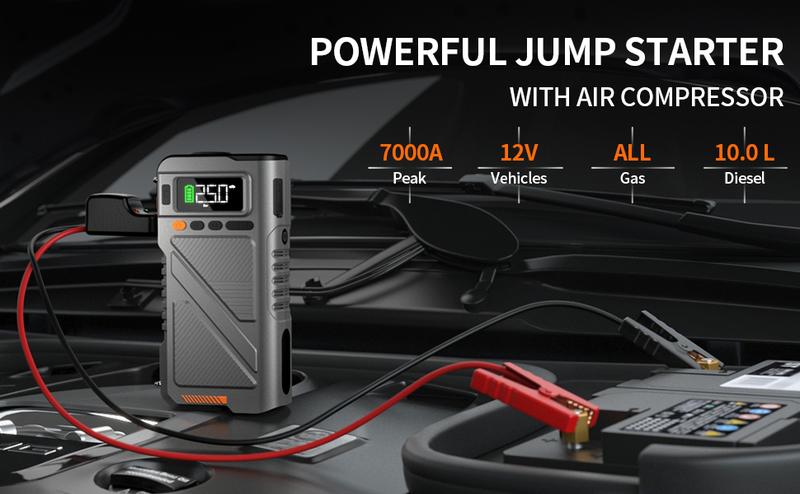 7000A【5 and 1 Multifunctional】Portable starter with air pump, car battery portable starter power box for ALL gas, 10.0L diesel, 150PSI tire inflation combination, 12V lithium battery starter power pack, starter power battery pack air compressor