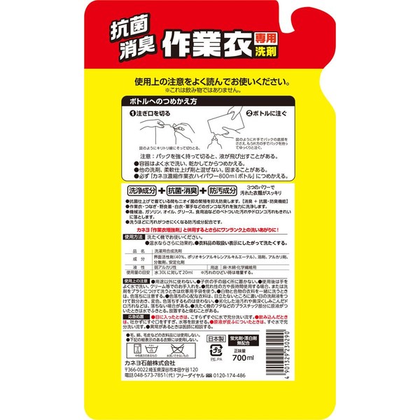 カネヨ石鹸 作業衣専用洗剤 液体 ジェル 詰替 700ml