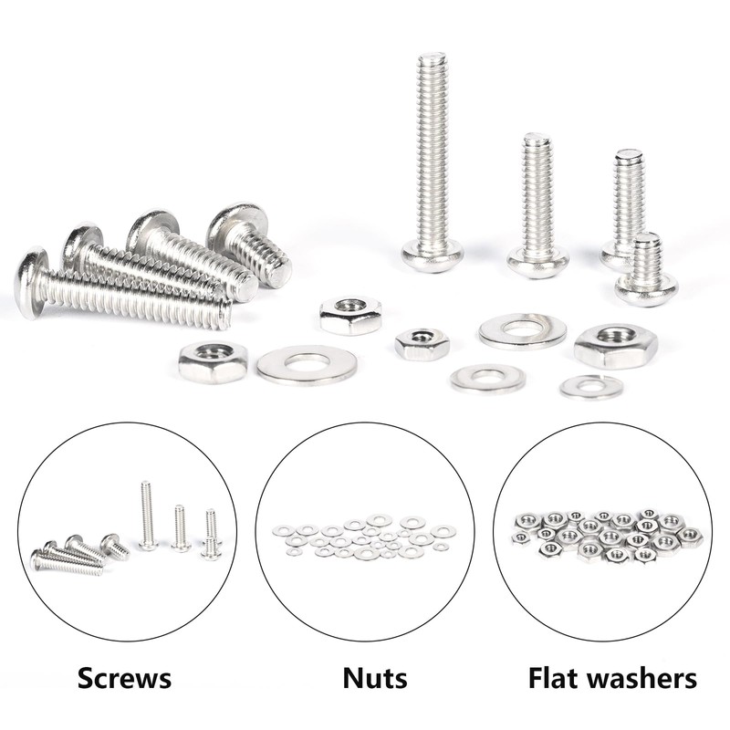 - 【Wide Applications】 This assorted kit includes a variety of popular sizes of bolts, nuts, and washers, commonly used in machinery, furniture, car, motorcycle repair, environmental protection equipment, 3D printing equipment, communication equipment, power facilities, electronic products, ship assembly, and DIY inventions, and more.