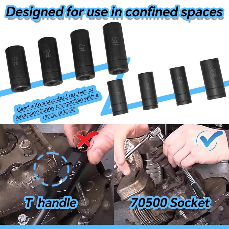 The 70500 Tap Socket Set is perfect for anyone who needs a reliable, durable, and versatile tool for tapping tasks. With its excellent quality construction, compatibility with various tap and die sets, and ability to reach tight spaces, this set is an invaluable addition to any toolbox. Whether you're working on automotive repairs, threading jobs, or industrial applications, this tap socket set ensures precision, strength, and efficiency.