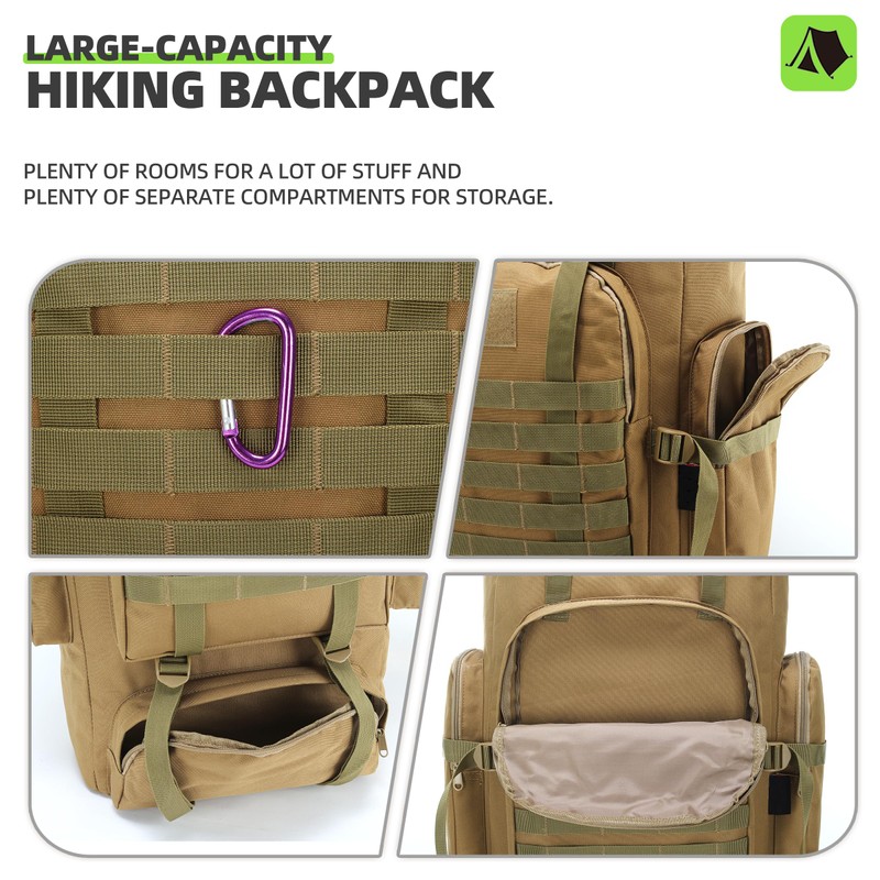 - 【Waterproof and Breathable Fabric】: The tactical military backpack is made of 900D Oxford cloth fabric and waterproof material. The thick density Tear Resisten Oxford cloth fabric is waterproof and wear-resistant, and the texture is tough and odorless. For traditional hiking backpacks, belts and high-quality zippers are better with durability and scratch resistance.