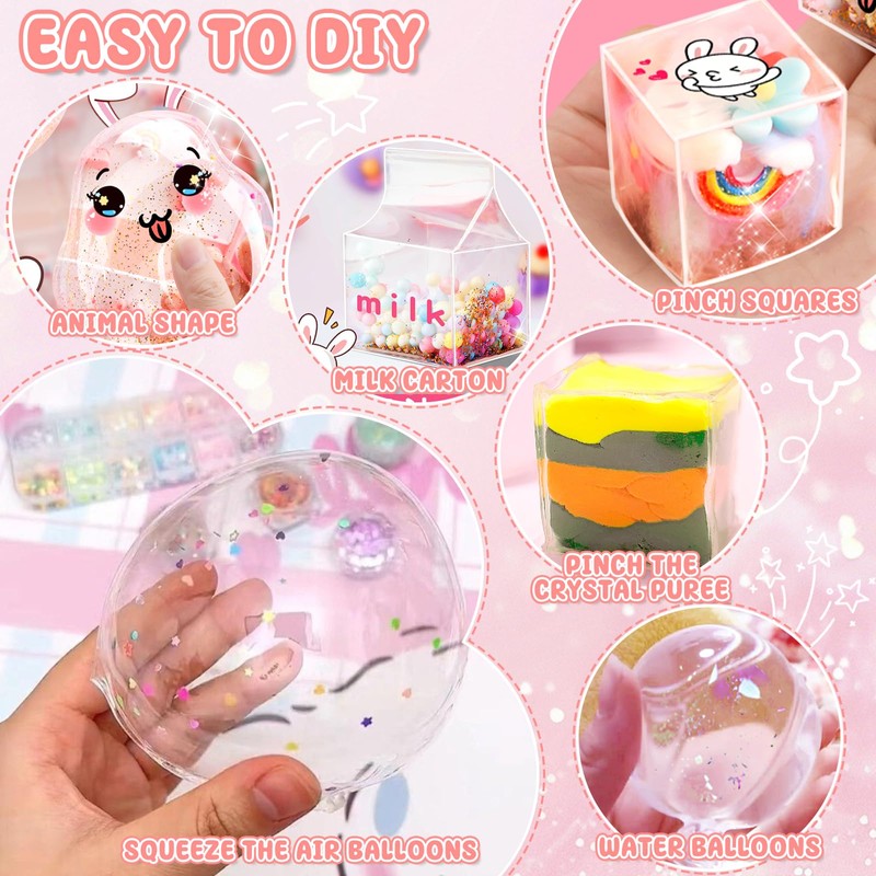 - [Release Your Creativity] The nano bubble fidget toys contains a wealth of decorative materials, making every creation of children full of surprises. Mix and match glitter powder, colourful pearls, chains, and more to create bubbles in all sorts of shapes, sizes, and styles. With expression stickers to add a personal touch, children can make your bubbles as quirky or as elegant as you fancy.
