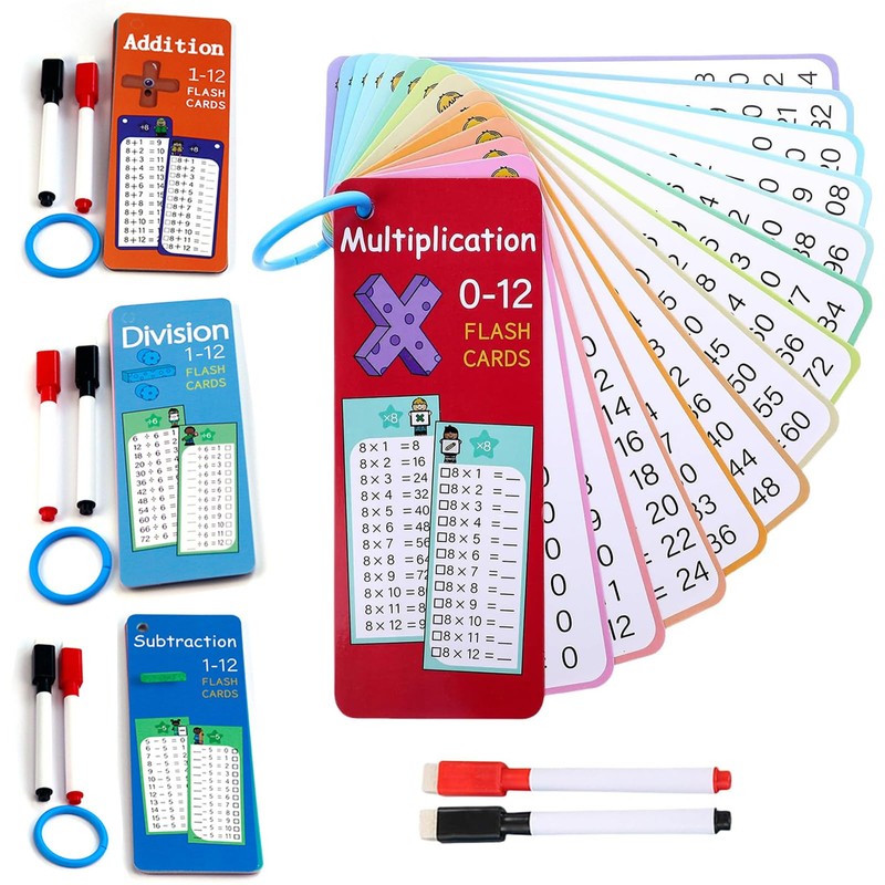 - You Will Received: This set includes 15 addition, 15 subtraction, 15 multiplication, and 15 division flashcards, along with 8 dry-erase markers (black and red) and 4 storage rings—everything needed for effective math table learning.