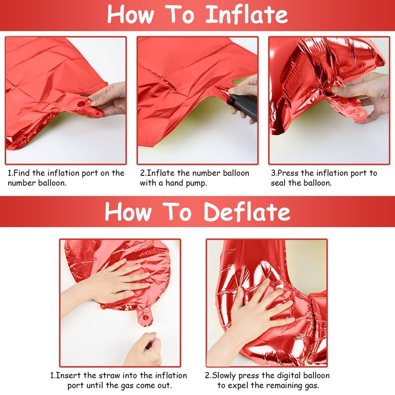 - ๐ Repeated Use ๐ - The red 70th birthday balloons numbers kit contains a straw that can be used to deflate the foil balloon, simply insert the straw into the valve and press gently until the gas is completely expelled. After use, it can be folded and stored for reuse.