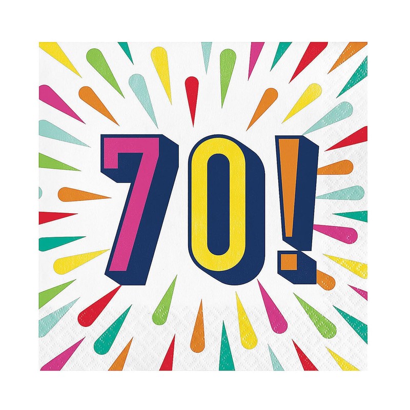 • These luncheon napkins are perfect way to add extra color to a 70th birthday party! Stack them next to the buffet table or hand them out with guests' meals. Material: Paper. (16 pcs./unit) Size: 6 1/2"