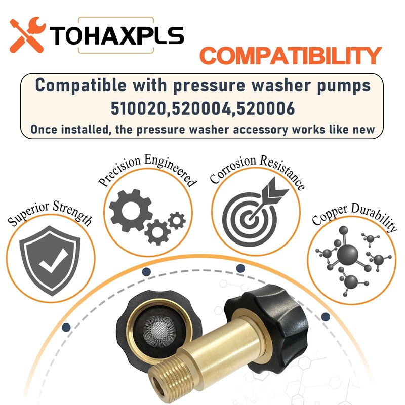 - 【Compatibility】The water inlet fitting is compatible with Simpson pressure washer pumps 510020,520004,520006.Once installed, the pressure washer accessory works like new