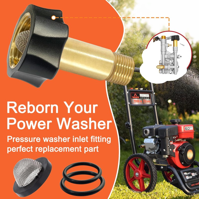 - WHY REPLACE THE WHOLE PUMP WHEN YOU CAN FIX IT? This pressure washer inlet fitting is a perfect replacement part, ensuring optimal performance for all cleaning tasks with genuine power washer parts