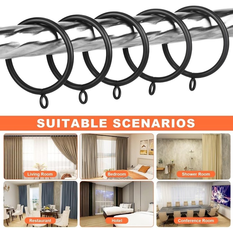 72 Pcs 1-1/2-Inch Inner Diameter Curtain Rings with Eyelets,Fits Up to 1 1/4-Inch Rod (Black-72pcs)