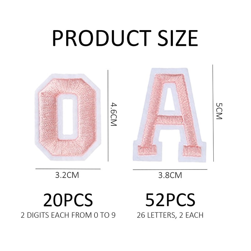 - Product contents: you will receive 72 pieces embroidered fabric patches with letters and numbers, including 52 pieces iron-on patches with letters A-Z and 20 pieces embroidery patches with numbers. The letter size is approx. 4-6 cm, the number size approx. 3-5 cm and the colour is pink.