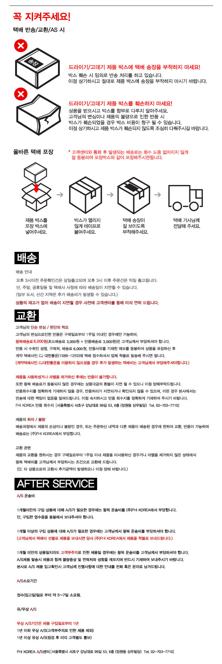 - A/S 책임자, 전화번호: FHI KOREA//02-703-7710
