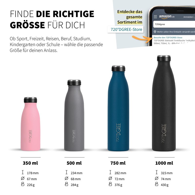 - For the sake of our environment – With the reusable, durable 'milkyBottle' water bottle, you also actively contribute to reducing waste production through disposable bottles. So you protect nature in the long term and, at the same time, also your wallet.