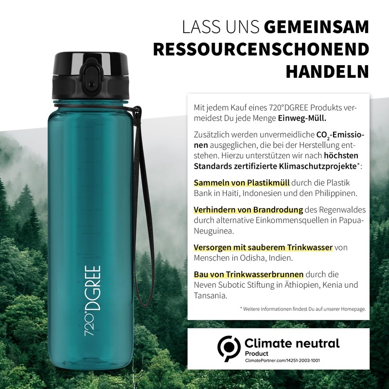 - Health and environment: The uberBottle is free from BPA and other plasticisers, and it offers you an odourless and taste-neutral drinking experience. The wide opening allows you to clean it effortlessly and, together with the fruit sieve, also allows you to easily fill it with ice, fruits, herbs or the 720°DGREE InFuuzed flavours. The uberBottle helps you avoid unnecessary disposable polyethylene terephthalate (PET) waste to make an active contribution to environmental protection.