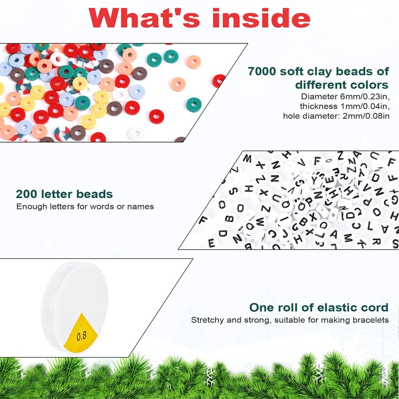 - Package Content: You will receive 1 clay beads bracelet making kit, including 7000 pieces of flat clay beads in 10 colors and 200 pieces of letter beads (A-Z) and 1 roll of elastic cord.