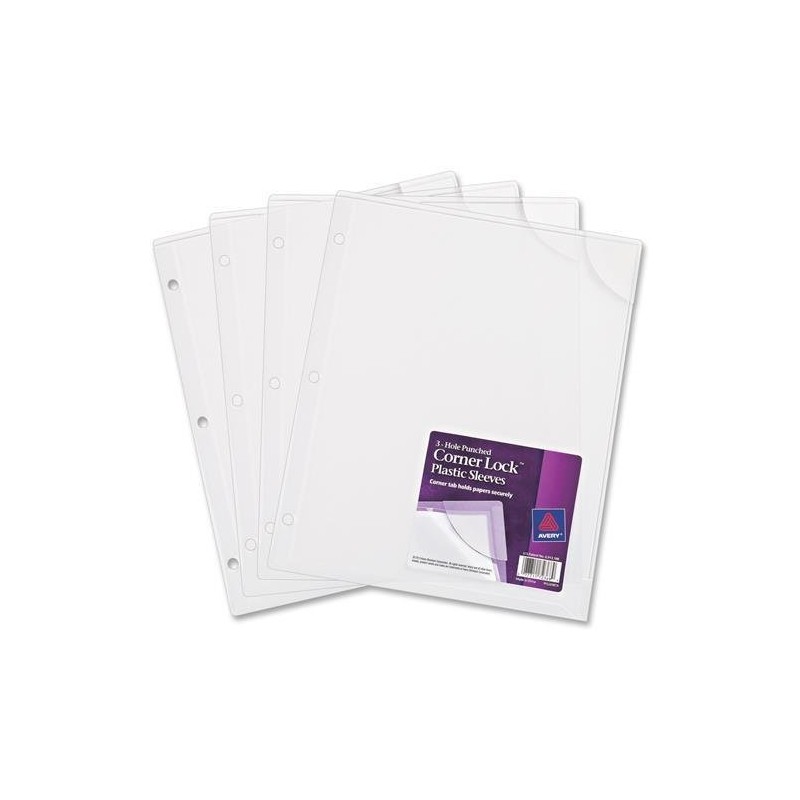 72269 Avery Corner Lock Plastic Binder Sleeve - 20 Sheet Capacity - 3 x Holes - Polypropylene, Plastic - 4 / Pack - Clear
