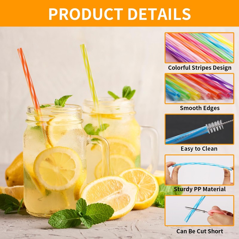- 【Quick Cleaning】Biodegradable Milkshake Straws also comes with 2 brushes, perfect for long-term use. You can use the cleaning brushes for cleaning or put Non Disposable Candy-Striped Drinking Straws in the dishwasher for easy cleaning and multiple reuse.