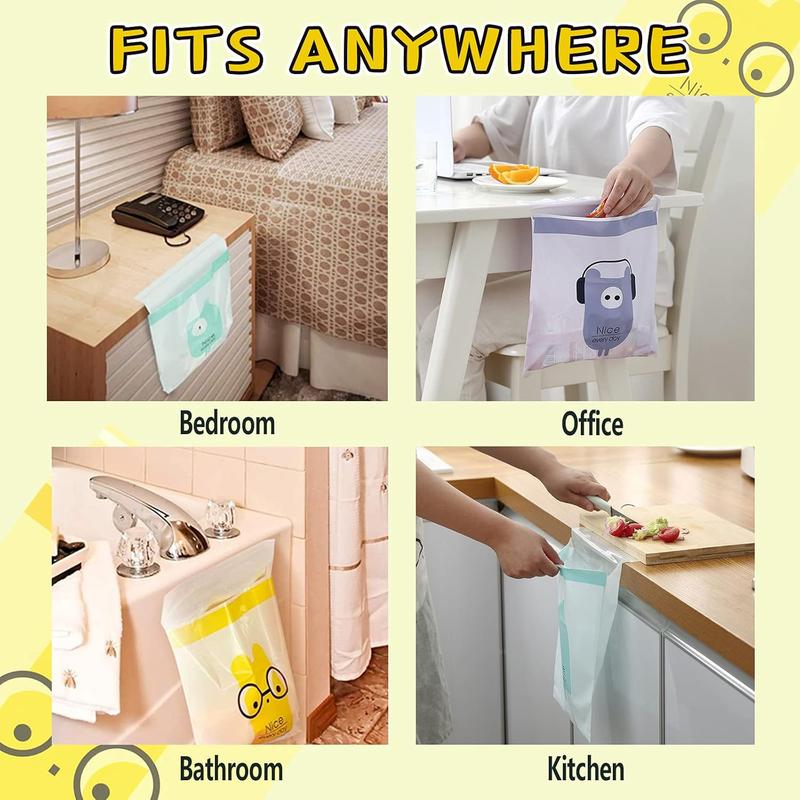 - WIDE APPLICATION: Easy stick-on disposable trash bag can be used in car, bedroom, living room, bathroom, kitchen, office, hospital ward etc.This portable and sealable bag is multipurpose, can be used as garbage bag or storage bag, suitable for indoor and outdoor, including road trip and plane trip.